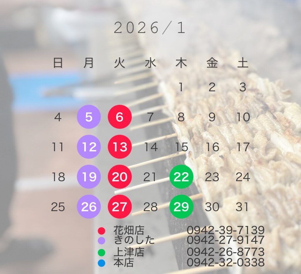 1月の店休日です。